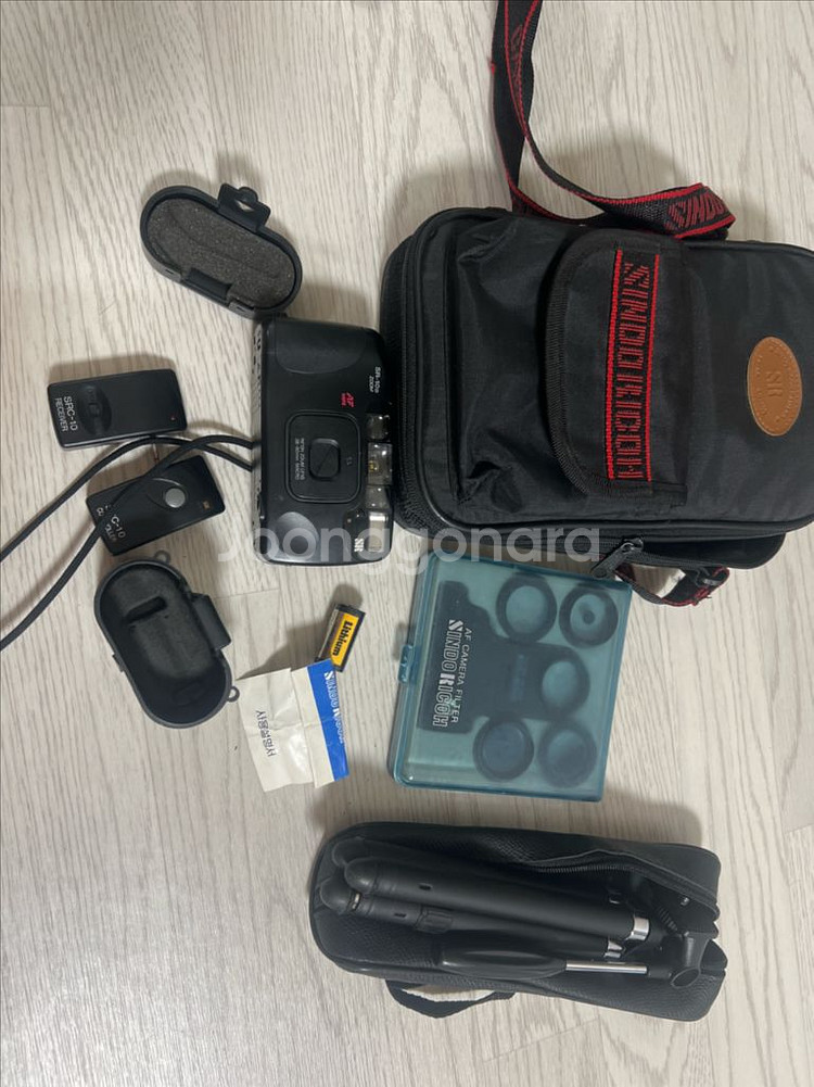 아빠가 아주 옛날에 사서 쓰던 신도리코 SR-10D 줌 미니 필름 카메라입니다 사용안한지 15년 이상 된 것 같은데 집에서 발견했어요 마지막까지는 잘 사용하던 겁니다 지금은 어떨지 잘 모르겠어요 필터 세트랑 리모컨 삼각대까지 있어요 가방도 함께 드릴게요 - 38-60mm 줌 렌즈를 탑재하여 다양한 화각으로 촬영 가능합니다 - 자동 초점 기능으로 간편하게 촬영할 수 있습니다 - 작고 가벼운 디자인으로 휴대성이 좋습니다 부품용이나 아날로그 옛날 감성으로 사용해보실 분들 옛날에 쓰던거니 사용감이런거 감수하고 가져가셔야합니다 편의점택배 택포드릴게요