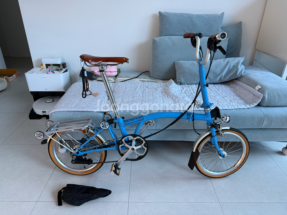 브롬톤 라군블루 색상 M6R 전체적으로 보호필름 작업되어있고 실주행 거의 없다고 보셔도 됩니다. 브룩스 스왈로우 티탄 레일 브룩스 그립 에델룩스2 라이트 및 허브 다이나모 휠셋 조셉쿠샥 싯클램프 리디아 이지휠 세트 신형 2*3 기어류 전부 변경 슈발베 마라톤 레이서 텐월 저가 튜닝 부품이 아닌 고급 부품으로 튜닝된 브롬톤 입니다.대략 튜닝비용 2백이상 입나다 상태 좋습니다 직거래 수원/용인