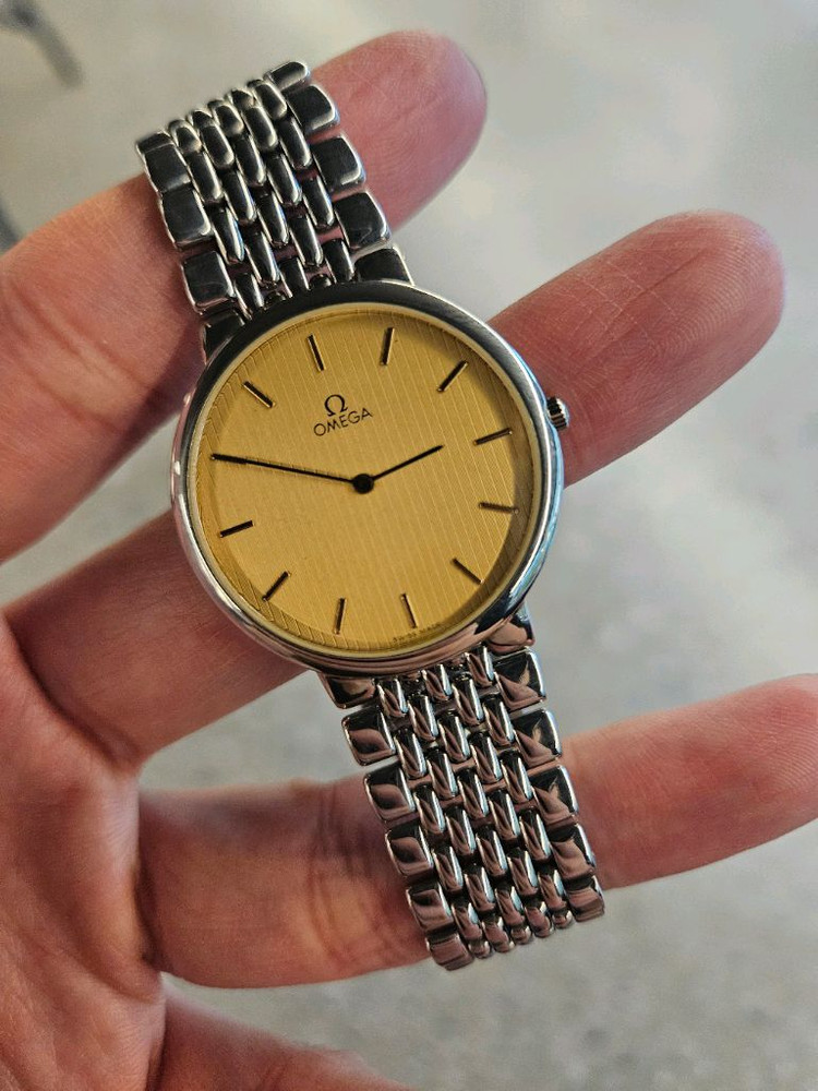 ㅤㅤㅤ 브랜드 : 오메가 사이즈 : 32mm 무브 : Quartz Movement Cal.1378 구성 : 시계단품 오랜 세월이 흐른 오메가 드빌 빈티지 모델이지만, 25년 9월에 폴리싱 작업을 했기 때문에 전체적으로 흠 없이 깨끗하고 시계 컨디션 매우 좋습니다. *10점 만점에 9.7 이상 25년 9월 23일 새배터리로 교체했고, 시간 잘 맞습니다. 32mm 사이즈로 손목이 얇으신 남성분에게 추천드립니다. 줄길이는 19cm로 넉넉합니다. * 안전하게 포장 후 우체국 발송해드립니다. 내용 다 읽어보시고, 시원하게 구매하실분만 연락주세요 ^^ 가격 : 45만원 ㅤㅤㅤ