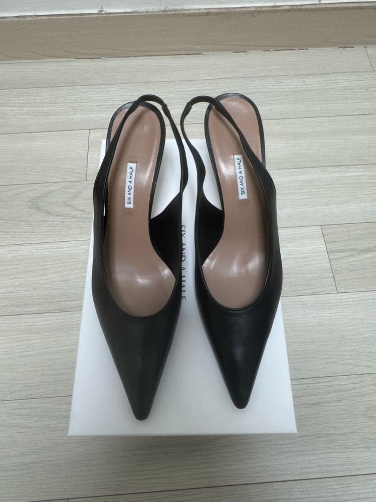 블랙 슬링백 힐이에요. 포인티 토와 적당한 굽 높이로 세련된 느낌을 연출할 수 있어요. 박스 포함 상태 좋은 제품입니다. 블랙 신은 사진은 없어서 핏만보시라고 다른색 사진으로 데체 해요 핏참고 하시면되시구 310000원 에 구매했구요 수제라 발편해요~ 미시착 입니다 집에서만 몃번 신어본게 다예요 사이즈 38 - 250 발볼늘림 2 로 늘리고 굽높이는 8센치 예요 사실분만 연락해주세요 찔러보기 ×