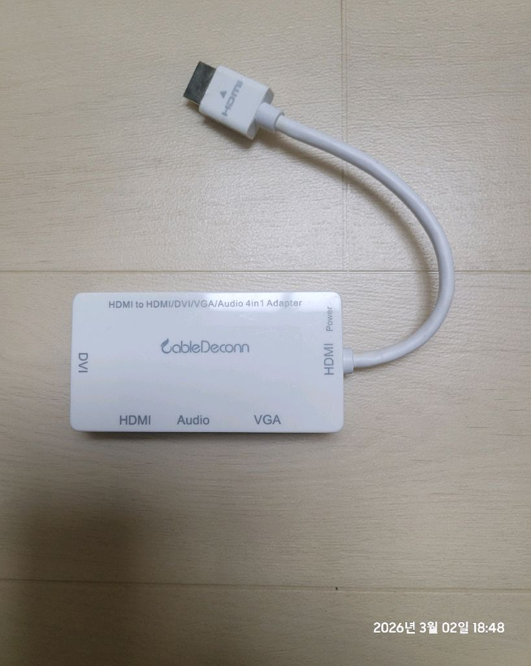 HDMI를 다양한 출력 포트로 변환해주는 멀티 어댑터예요. HDMI, 오디오, VGA 모두 연결 가능하고 상태 양호합니다. 직거래는 지축역에서 합니다.