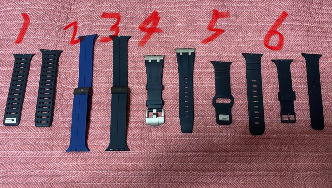 제품명 : 1. POLINOART MOOSE 애플워치 스트랩 블랙 2. 애플워치 마그네틱 실리콘 스트랩 네이비 3. 애플워치 마그네틱 실리콘 스트랩 블랙 4. 애플워치 고급 실리콘 밴드 블랙 [무광] 5. 파우트 애플워치 스포츠 밴드 블랙 6. UAG 애플워치 도트 실리콘 스트랩 V2 블랙 사이즈 : 40/41/42mm 공용 1번은 3.4 정도 2.3번은 합쳐서 4.7 정도 4번 2.7정도 5번은 1 정도 6번은 4정도에 직접 구매 하였습니다. 스트랩 모두 시착 후 생각이 바뀌어서 판매 합니다. 시착 후 판매 하는거기에 상태는 최상급으로 좋습니다. 거래내역 보시면 믿고 구매하실 수 있으실 겁니다. 희망가격 : 합쳐서 택포 4.5 (따로 판매X) 거래방법 : 택배 or 직거래(안산 상록수역or사리역) * 이 외에도 다양한 좋은 물건들 싸게 팔고 있으니 거래내역 한번 씩 보고 가세요. * 판매완료로 전환 안되어 있으면 구매 가능 (판매되면 판매완료로 바로 전환 하고 있습니다.)