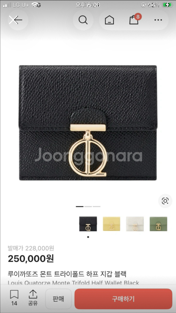 하프 지갑 블랙 컬러예요. 골드 로고 장식이 포인트인 클래식한 디자인입니다. 깔끔한 상태로 실용적인 사이즈라 데일리용으로 좋아요.