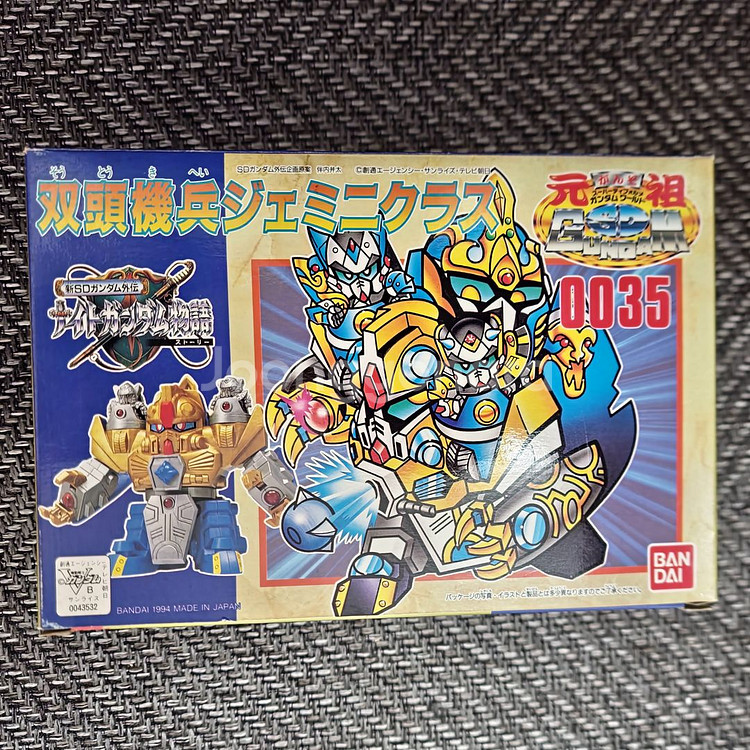 반다이 건프라 원조SD 쌍두기병 제미니 클래스 판매합니다 미조립품이며 패키지 박스의 상태는 큰 데미지는 없으나 오래되어 낡은편입니다 스프링 부품이 테이핑 박리로 원래의 자리에서 이탈하고 있습니다 그리고 설명서의 상태가 좋지못합니다 (접힘, 얼룩) 서울 구로구 오류동역 근처 직거래 또는 택배거래 가능합니다 관심 있으신 분은 연락 부탁드려요 감사합니다