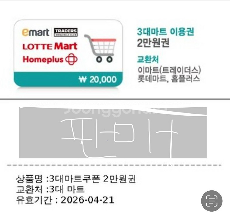 3대마트 상품권 롯데마트 이마트 트레이더스 홈플러스 2만원권