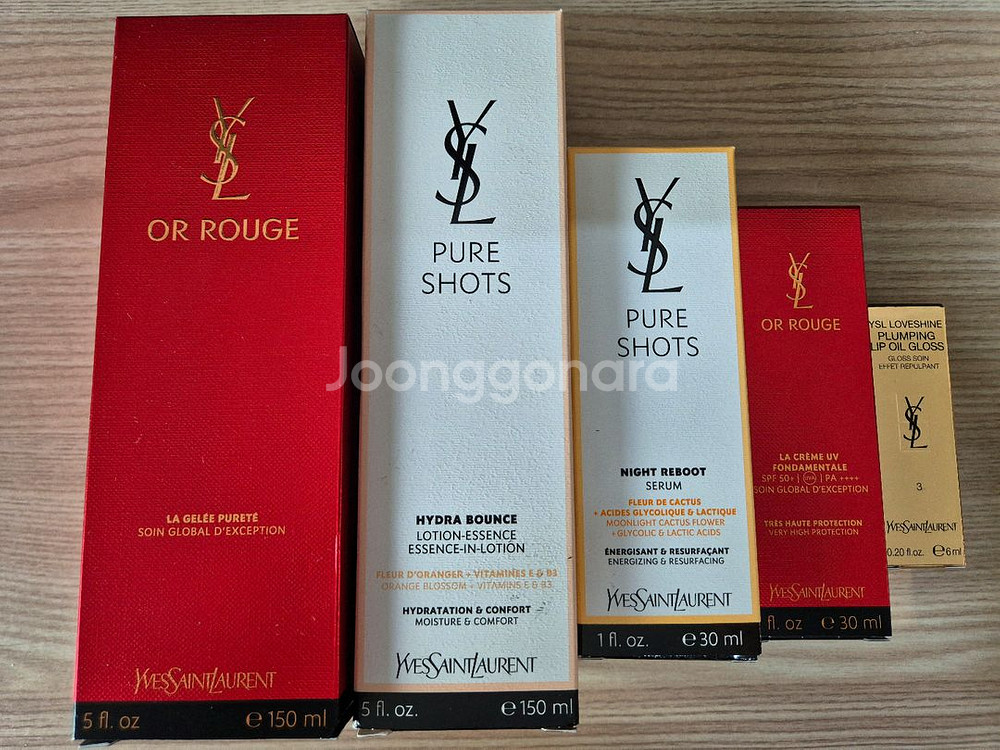 입생로랑 퓨어 샷 하이드라 바운스 에센스 인 로션 150ml (27년 1월 / 정가 119,000원) 입생로랑 오 후즈 라 젤레 푸레떼 클렌저 (26년 10월 / 정가 136,000원) 입생로랑 퓨어샷 라이트 리부트 세럼 (27년 12월 / 정가 237,000원) 입생로랑 오 후즈 라 크림 유브이 (26년 10월 / 정가 185,000원) 입생로랑 러브샤인 플럼핑 립 오일 글로스 3번 (27년 11월 / 52,000원) 전부 백화점에서 구입한 정품입니다. 유기가 가까워져서 저렴하게 판매하는거라 개별판매,에눌 안됩니다. 샘플들과 가방과 파우치들 덤으로 드립니다. 꼭 구입하실분만 문자 부탁드립니다. (010.9104.0254)