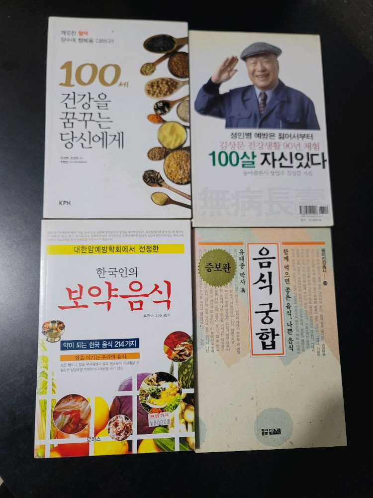 한의학과 건강에 관한 책들로 구성된 세트예요. '100일 자신있었다', '한국인의 보약음식' 등이 포함되어 있고 상태는 양호한 편입니다. 반값택배도 가능합니다