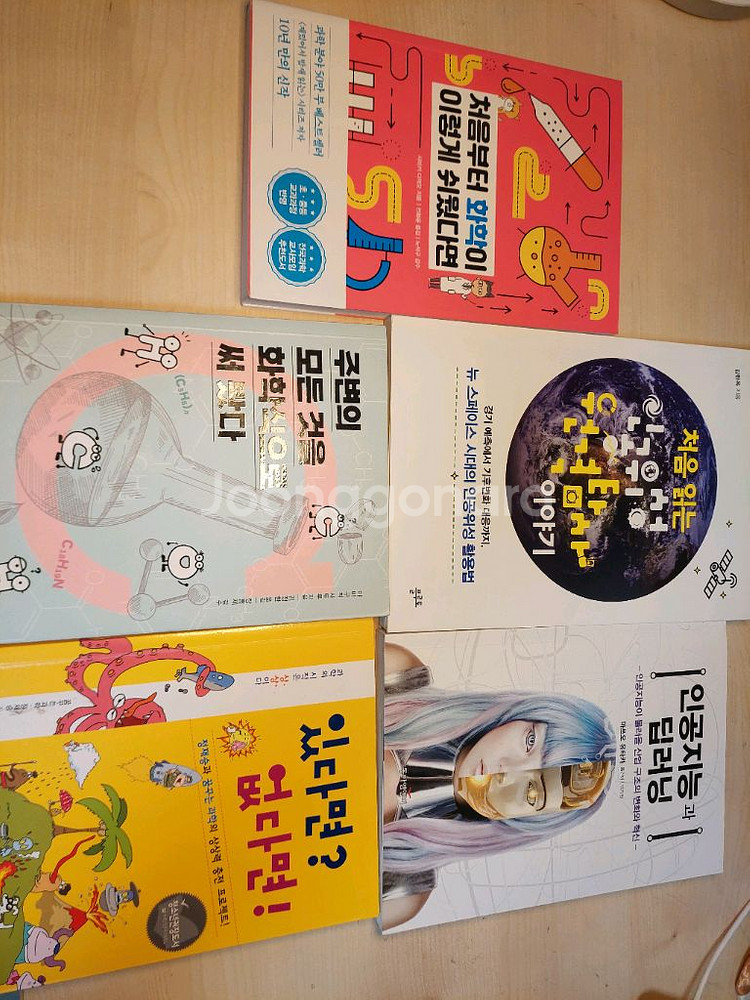 도서명: 처음부터 화학이 이렇게 쉬웠다면 ISBN: 978-89-475-4693-5 저자: 사마키 다케오 / 전화윤 옮김 출판사: 한국경제신문 상태: 좋음 정가: 15,000원 도서명: 있다면? 없다면! ISBN: 978-89-7184-775-6 저자: 정재승 출판사: 푸른숲주니어 상태: 좋음 정가: 16,800원 도서명: 인공지능과 딥러닝 ISBN: 979-11-86008-23-2 저자: 마쓰오 유타카 / 박기원 옮김 출판사: 동아앰엔비 상태: 뒷표지 미세오염 정가: 15,000원 도서명: 처음 읽는 인공위성 원격탐사 이야기 ISBN: 979-11-88569-24-3 저자: 김현옥 출판사: 플루토 상태: 좋음 정가: 17,000원 도서명: 주변의 모든 것들을 화학식으로 써봤다 ISBN: 979-11-92444-83-3 저자: 야마구치 사토루 / 김정환 옮김 출판사: 더숲 상태: 매우좋음 정가: 18,000원 개별구매시 권당 6,000원 2권/3권/4권 구매시 1,000원/1,500원/2,000원 할인 5권 일괄구매시 배송료 무료 다른 판매상품과 같이 구매시 가격협상 가능합니다 언제든지 연락주세요
