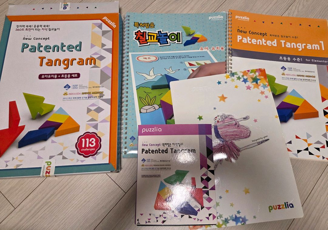 퍼즐리아 자석 칠교놀이 세트입니다. 두 권짜리입니다. 칠교종류가 다양한데 많이 고르고 산 제품인데요. ㅡ칠교교구만 있는것 보나 교재가 함께 있는것 ㅡ유아용과 초등용 수준이 구분되는 교재가 함께있는것 ㅡ무엇보다 자석으로 작품이 잘 붙어 고정이 잘되는것 ㅡ360도 회전까지 되서 도형변형이 되어서 퍼즐리아 이 상품을 샀고 추천합니다. 유아용은 몇 번했고 초등용은 앞쪽만 좀하고 컸네요. 할 시간이 없을것 같아 내놓습니다. 구성품 다있고. 자석 받침대는 살짝 사용감있고. 나머지는 양호 깨끗한편입니다. 직거래가입니다.