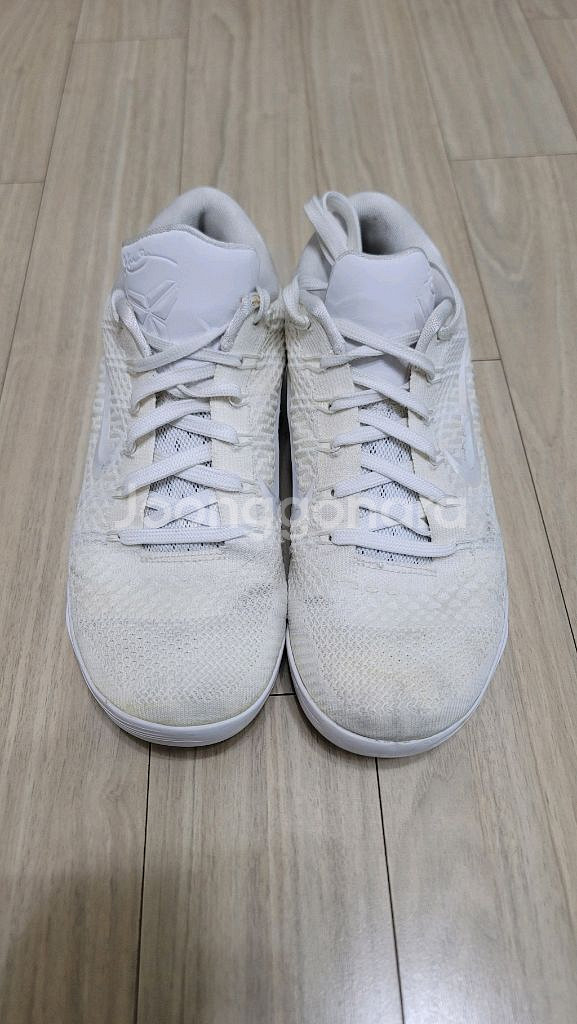 나이키 코비9 엘리트 로우 헤일로 흰색 농구화 260mm입니다. 세탁을 마친상태이나 흰색의 니트재질이라 전체적으로 사용감은 있으며 신발끈에 의한 작은 터짐과 아웃솔 사용감등은 있으나 기능적인 하자는 없습니다. 상당히 저렴하게 판매합니다. 편하게 문의주세요.