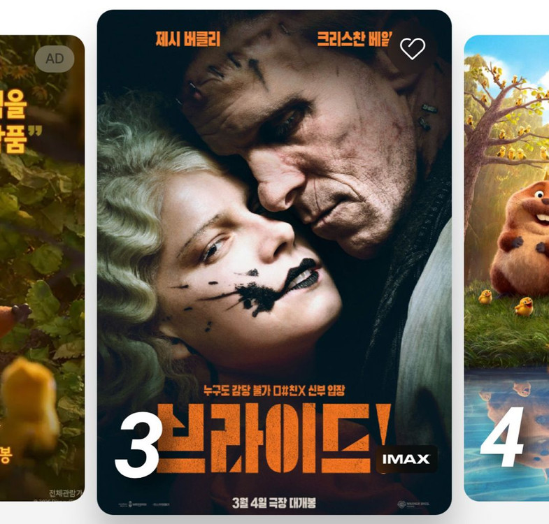 영화 브라이드! 원하는 상영관 말해 주시면 예매합니다 평일만 가능합니다 채팅 주세요