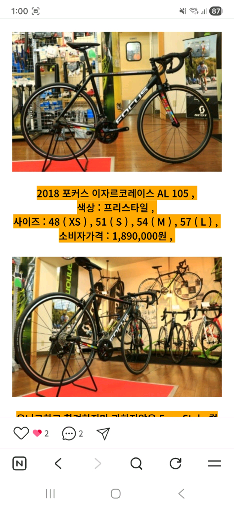 개인정보(거래정보)를 주고받는 행위는 사기에 노출될 수 있으므로 즉시 중고나라로 신고해 주세요2018 포커스 이자르코레이스 AL 105(s 사이즈) 170~180 생활기스 정도 입니다.
