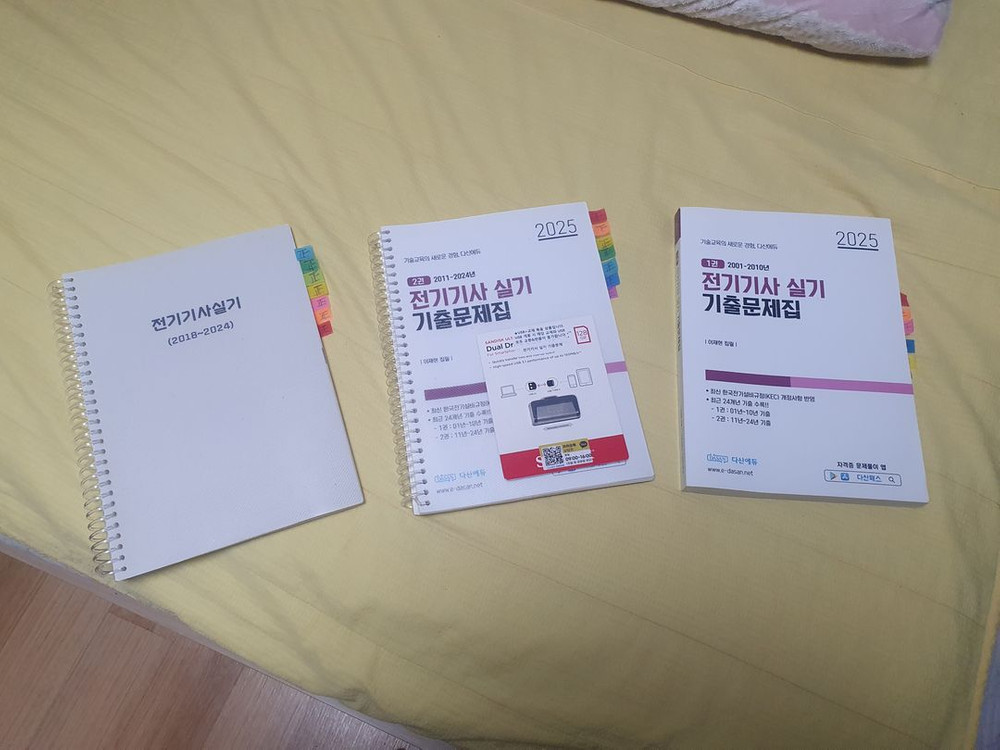 2025 다산에듀 전기기사 실기 기출문제집 +usb포함 팝니다 기출문제집 전권이며 한권은 원본 한권은 2권으로 스프링제본하여 나눈상태입니다. 필기감이 좀 있습니다만 공부하는데는 전혀 지장없습니다. usb강사는 이재현입니다. 선입금외 거래는 하지않습니다. 의정부 지역 직거래가능. 문의사항 메시지주세요. 네고는 8만원까지 가능