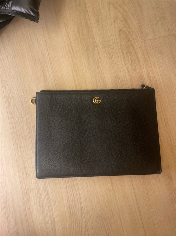 정품 클러치백으로 블랙 컬러에 골드 GG 로고가 포인트예요. 사용감은 있지만 전체적으로 깔끔한 상태입니다. 실용적이면서도 고급스러운 디자인이라 데일리로 활용하기 좋아요. 네고 됩니다 급하게 판매합니다 옆에 고리를 잊어버려서 판매합니다