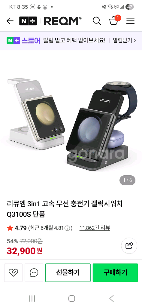 리큐엠 3in1 고속 무선 충전기 갤럭시워치 Q3100S 단품