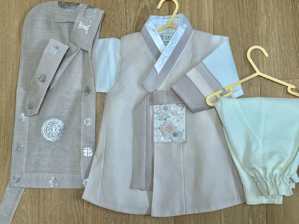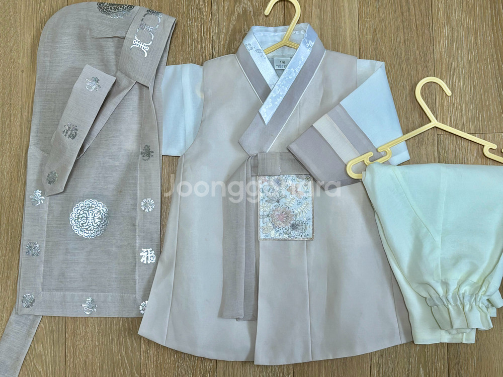 어진아이 남아 한복 세트입니다 - 색상은 아이보리&베이지색입니다 - 돌 남아용으로 1세 사이즈입니다 돌잔치때 딱 한번 입고 보관만해놨는데 얼룩이 생겼네요 세탁해보지는 않았어요 (사진참고해주세요) 보이는 최대한 사진으로 올렸습니다~ 중고상품 특성상 교환 및 환불이 불가한 점 양해 부탁드립니다