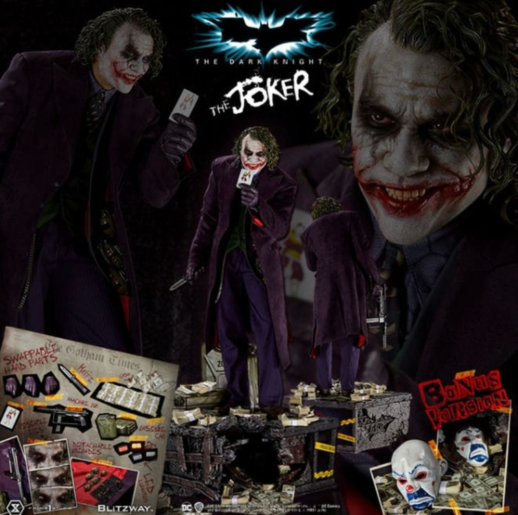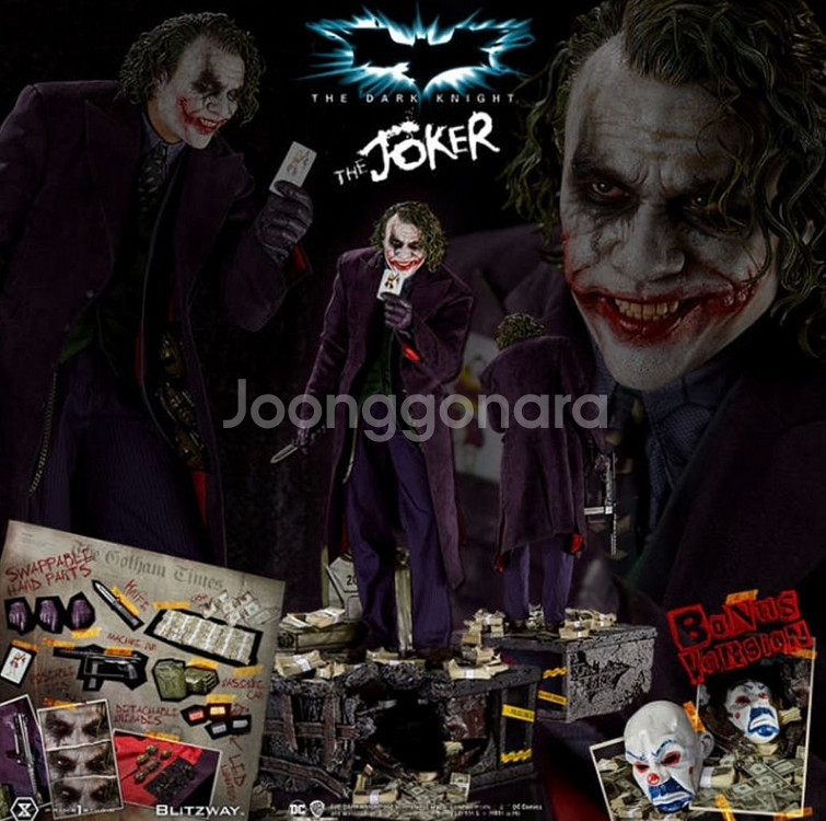 블리츠웨이에서 출시한 다크나이트 조커 1/6 스케일 피규어입니다 영화 속 조커의 모습을 그대로 재현했으며, 다양한 액세서리가 포함되어 있습니다 크기는 약 72.2cm x 40cm x 42.8cm입니다 - 교체 가능한 손 파츠 - 다양한 무기 - 보너스 버전 마스크 포함 구성품 빠짐없이 있으며 풀박스 보유중입니다 돈다발과 노란색 경고테이프는 미사용입니다 led파츠는 배터리가 다 되어서 교체해줘야합니다 생활전시했습니다 하자없이 상태 좋습니다 가게 인테리어용으로 딱입니다 무게가 상당하여 직거래만 합니다 직거래는 가산디지털2로 입니다