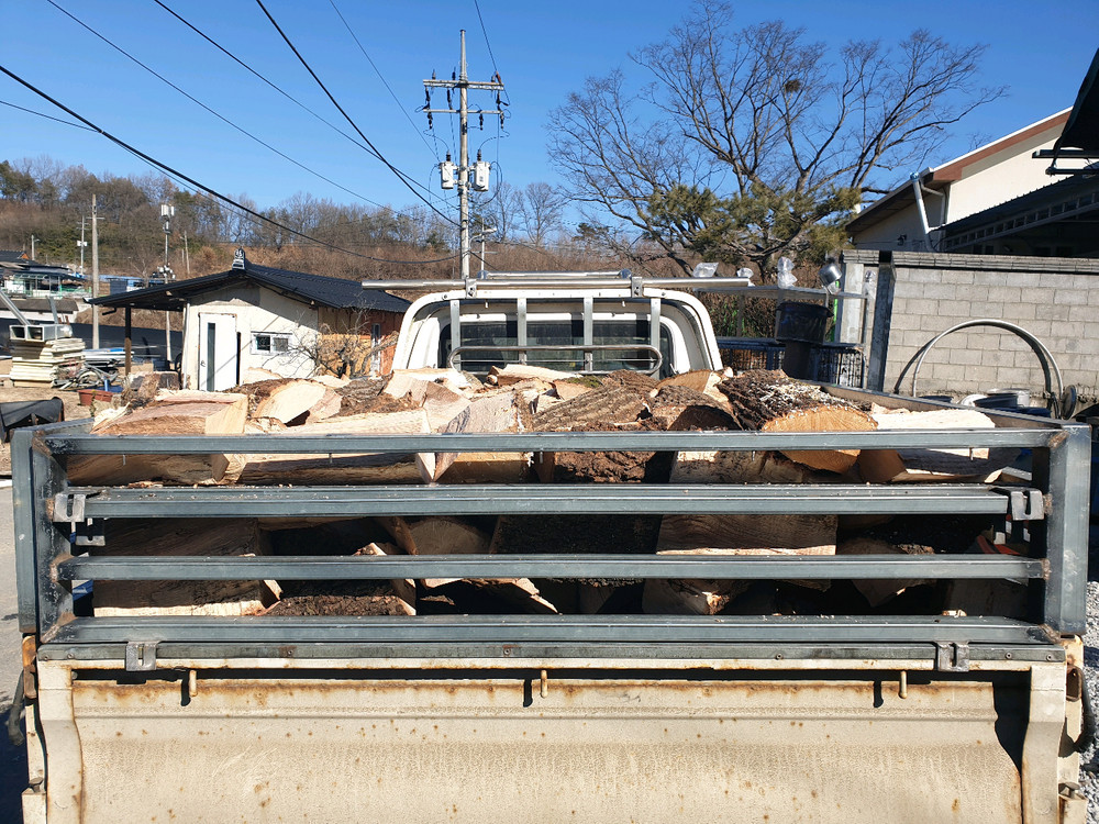 갈참나무 3큐빅메터(루베) 1톤 트럭에 실린 사진입니다. 덤으로 더 드립니다. 경북 예천군입니다. 운반비는 거리따라 다릅니다. ㅇ ㅣㅇ 이일칠육 칠칠일이