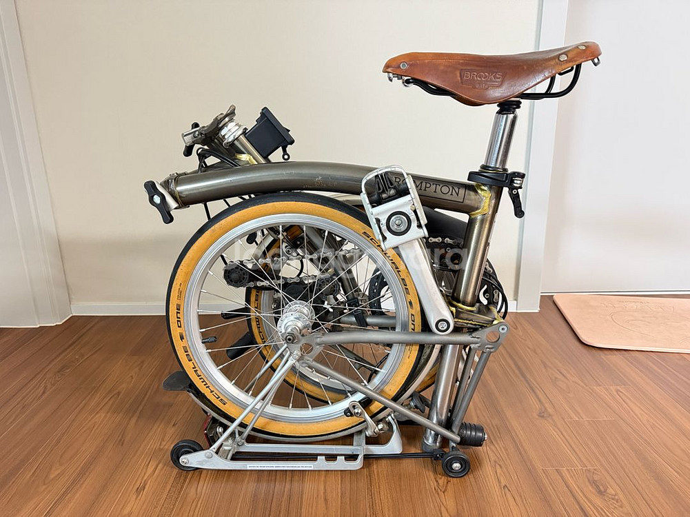 17년식 브롬톤 티탄 s2r-x 로우라커 판매합니다 Ppf는 안되어 있고 메인프레임에 상처가 좀 있으나 나머지는 상태 양호합니다 순정 티탄포크 리어에 2단 s바로 경쾌하게 잘나가고 승차감 좋습니다 내외부 방청하고 창고에서 묵히는게 아까워 판매합니다 산바다 정식수입이며 짐받이 추가로 설치 했습니다 브룩스 안장이나 좀 지저분합니다 슈발베 타이어 교체 후 마일리지 적습니다 저렴하게 브롬톤 티탄 가져가세요 직거래 서울 동대문구 장안동 입니다