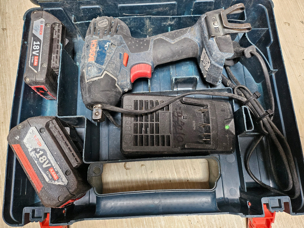 경기도 부천 소사본동입니다. 보쉬 18V 임팩트 렌치입니다. 배터리 2개, 충전기, 케이스 포함입니다. 작동 잘 됩니다. 사용감 있습니다. 0ㅣ0 오구공육 4하나 9하나 로 문의바랍니다.