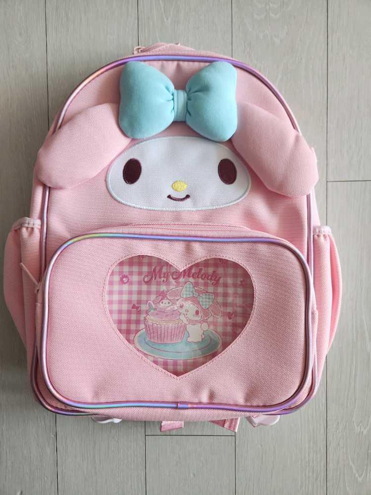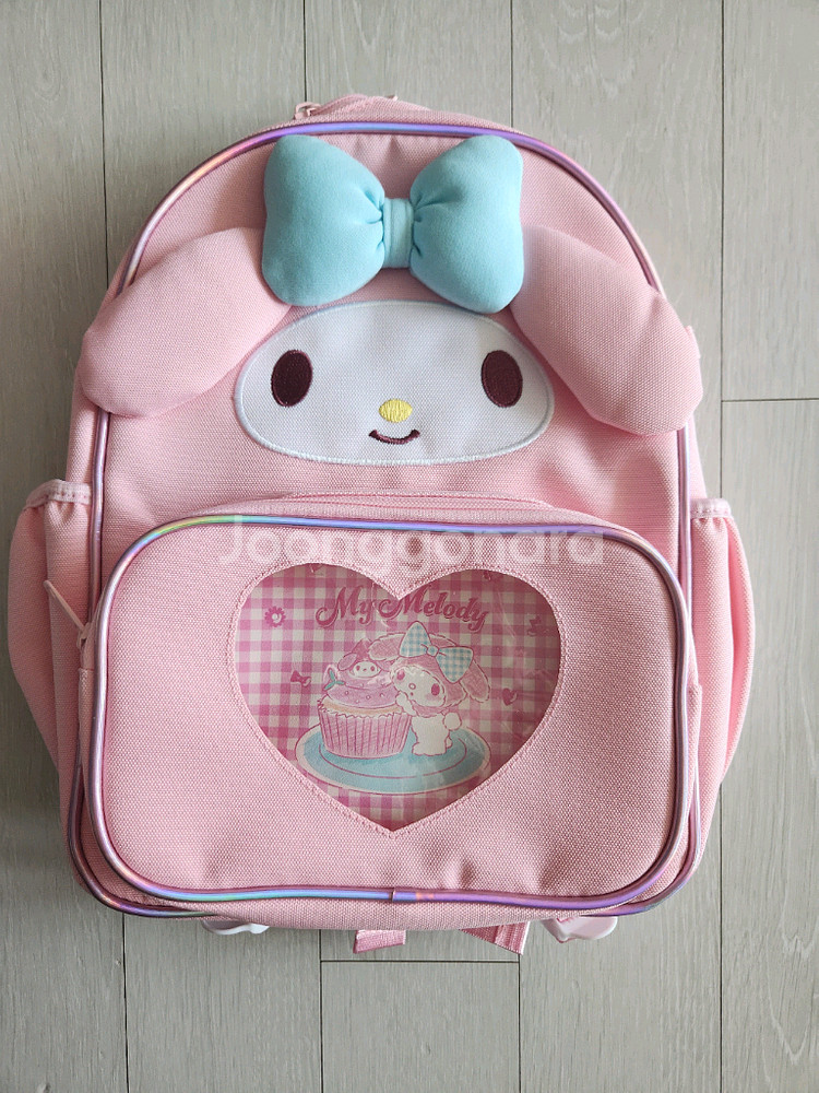 귀여운 캐릭터가 그려진 핑크색 백팩이에요. 태그가 달린 새 제품 상태로 아이들이 좋아할 만한 디자인입니다. 가로 20~30 세로 33정도 택포 입니다