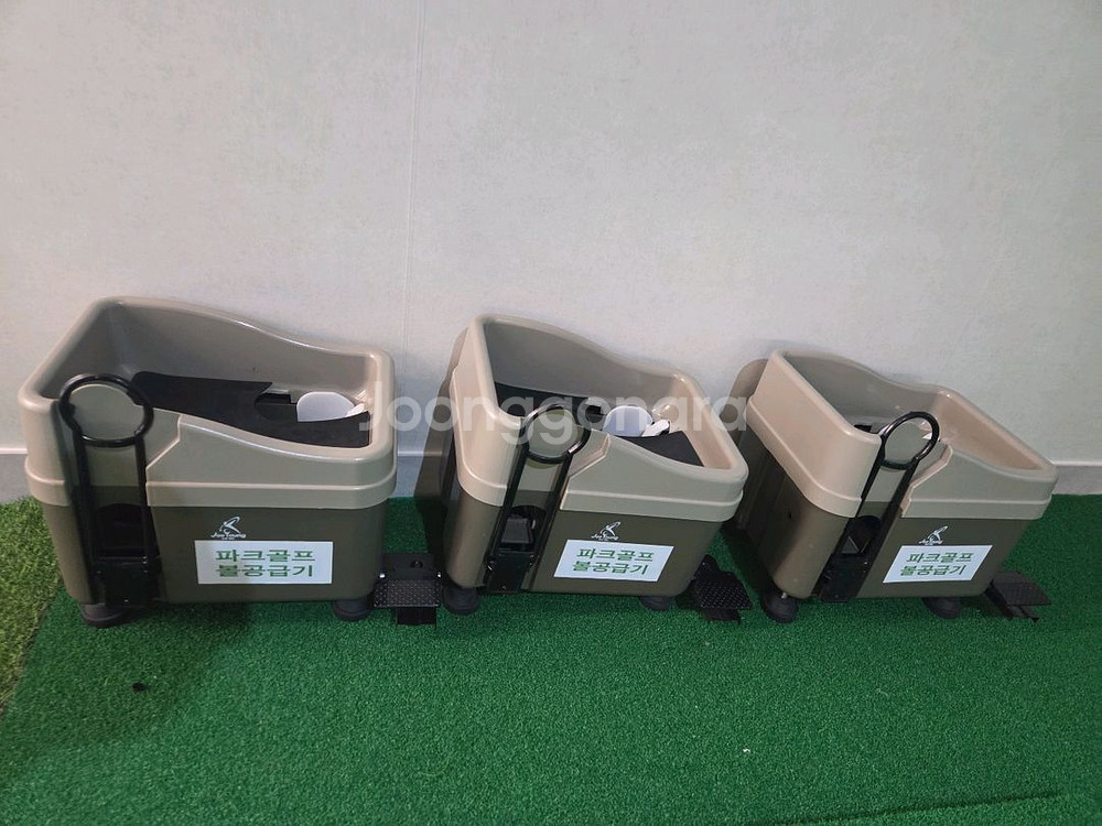 스위치를 밟으면 공이 자동으로 공급되는 파크골프 볼 공급기 입니다 총3대 이구요 각 구매시 대당12만원(현재 최저가23) 3대 일괄 구매시 30만원입니다. 가정에서 쓰시거나 관공서 연습장 등에서 다양하게 쓸 수 있습니다