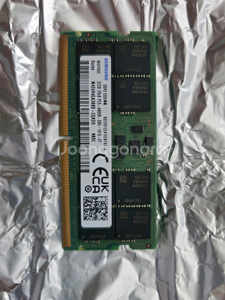 삼성전자 노트북 DDR5 4800B 32GB 한개 입니다. LG 울트라기어 노트북에 장착해서 사용했던 램입니다.