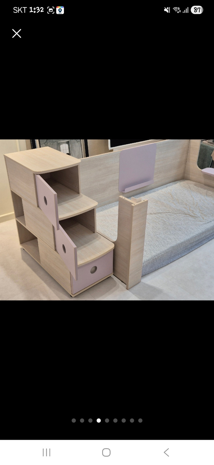 일룸 이층침대입니다. 여아혼자 사용하다 1층 분리후, 1층침대 사용했어요. 눈에띄는 흠없이 깨끗하고 튼튼해요. 부속품 함께 구성이며 매트리스 미포함판매입니다. 이전설치비고려해 저렴하게 판매합니다.