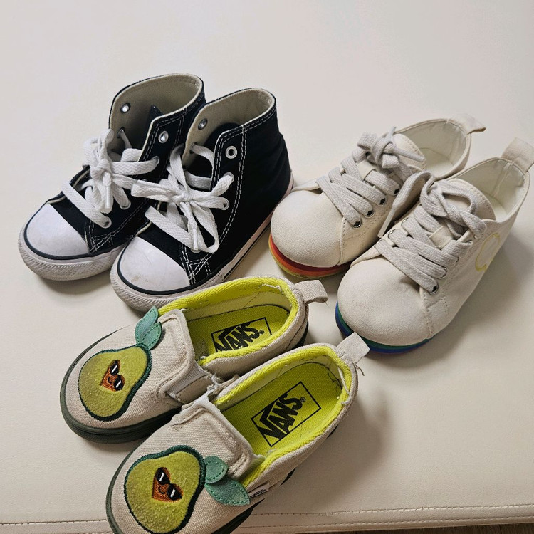 3개 모두 아끼고 컨버스,데님인더박스는 몇번 신기지 못했는데 작아져서 같이 판매합니다 3개 모두 사이즈는 다르나 사진보면 비슷해요 반스130,컨버스150,데님인더박스160 현재 발볼 넓은 140아기 안들어가서 판매해요 반스 아보카도는 사용감 보여요 개당 판매 어려우며 같이 구매하실분 연락주세요 반값택포로 드립니다