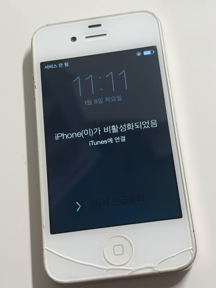 개인정보(거래정보)를 주고받는 행위는 사기에 노출될 수 있으므로 즉시 중고나라로 신고해 주세요아이폰 4입니다. 2011년에 구매해서 버튼이 잘 안눌립니다. 깨진 곳도 있고요. 사진 보시다시피 비활성화 상태입니다. ㄱ 다 감안하시고 연락부탁드립니다