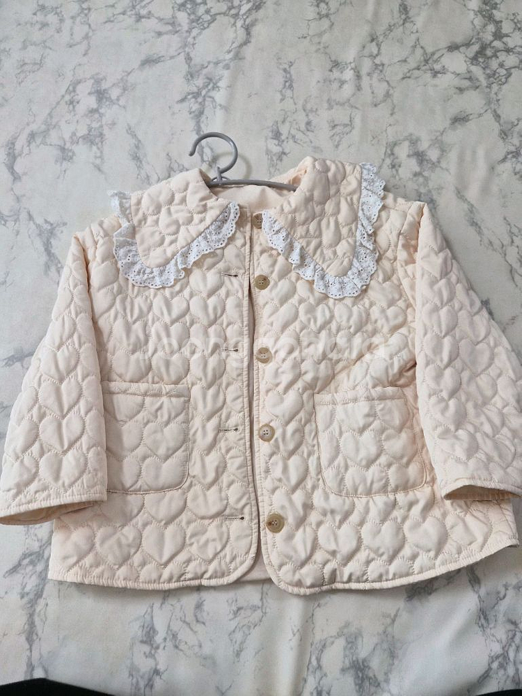 레이스 카라가 예쁜 경량패딩 140 사이즈 하트자수 택배비별도