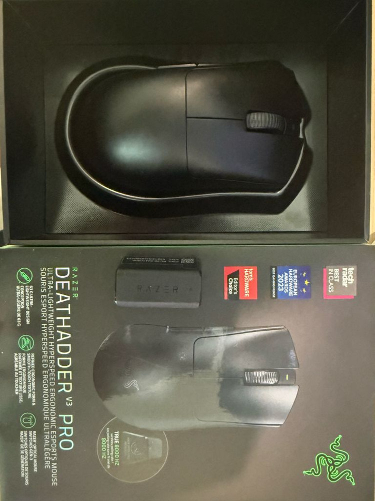 레이저 데스에더 v3 pro 무선 A/s받은지 한달도 안됐습니다 레이저는 a/s 새상품으로 교체해주기때문에 한달도 안된 거의 사용감 없는 마우스입니다 당연히 정품이고 처음 구매한 구성품 모두 포함되어있습니다 직거래 김포 마산역 또는 마산동