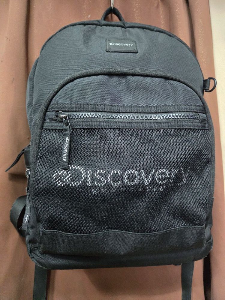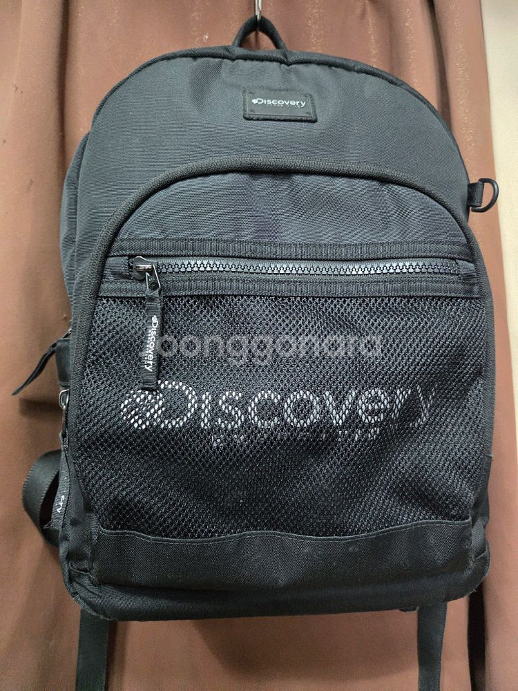 디스커버리 블랙 백팩 판매합니다. 무난한 디자인이라 어느 코디에도 잘 어울립니다. 앞부분 매쉬 포켓에 디스커버리 로고가 포인트입니다