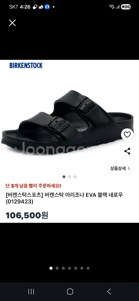 버켄스탁 아리조나 EVA 블랙 네로그 샌들입니다. 245사이즈로 착용감이 좋고 사용감약간있고 알파벳글자 2개정도 조금지워졌어요 그래서가격확내렷어요 실용적이고 편안한 디자인으로 여름철 필수템이에요!