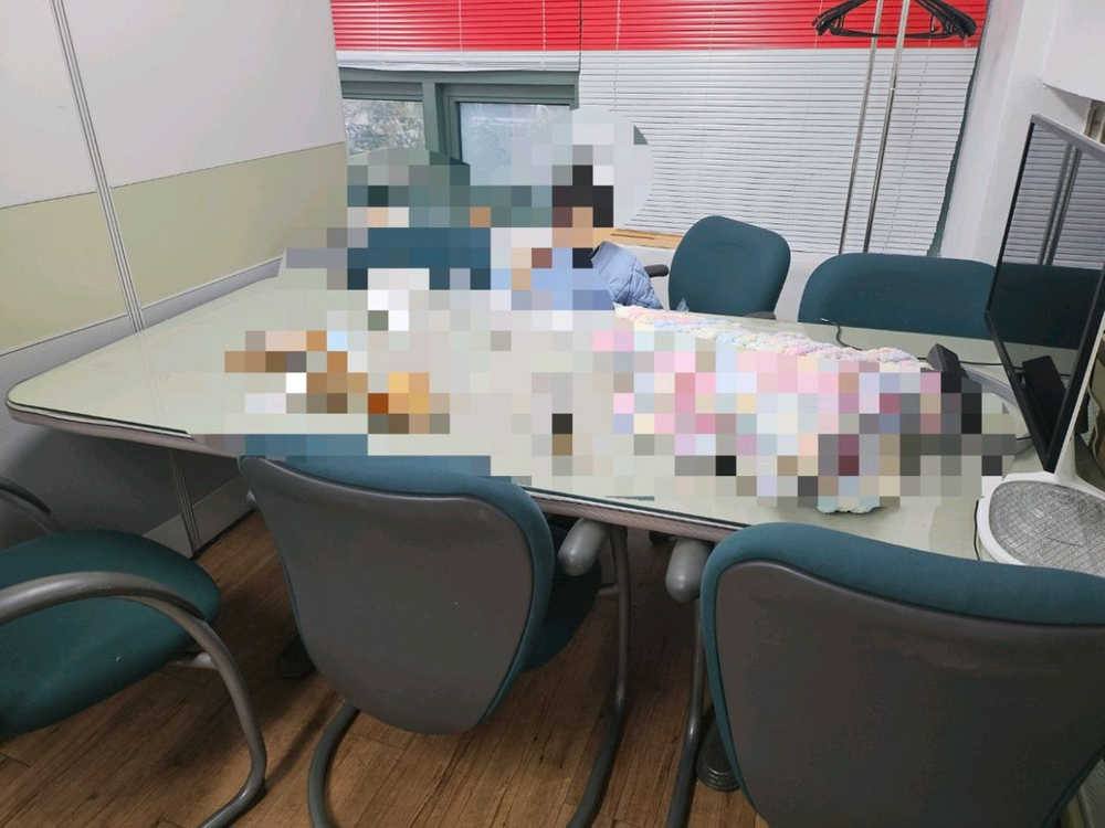 회의책상 + 의자 6개 나눔 하얀책상 + 책상의자 만원씩 가전등은 2~3만원 삼각지역 인근 사무싱입니다. 01041팔사7725
