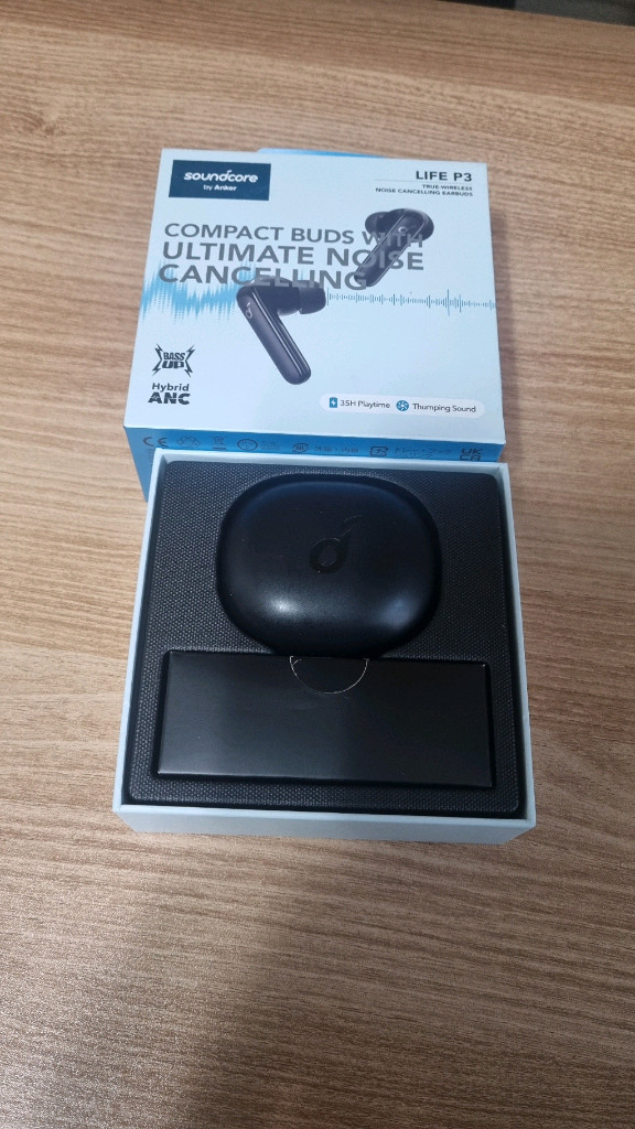 앤커 사운드코어 P3 이어폰입니다. 사진과 같이 상태는 좋습니다. 풀박스로 이어팁도 크기에 따라 있고 음질도 좋으며 노이즈캔슬링과 무선충전..방수방진이 가능한점이 특징입니다. 전용앱을 통해 다양한 설정이 가능합니다.