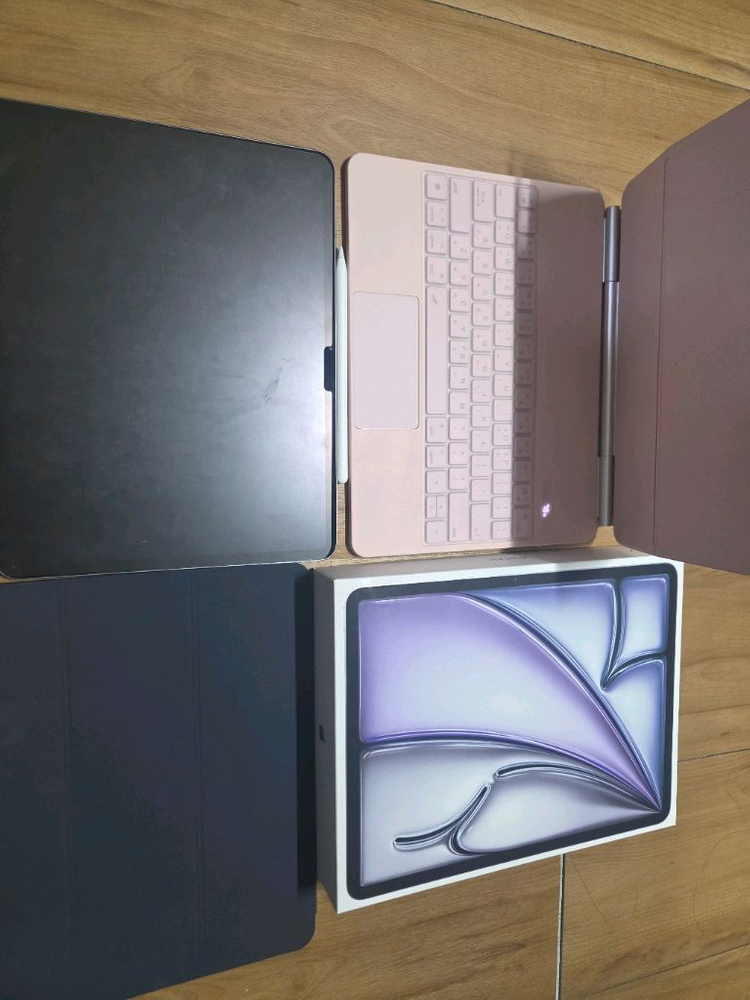스페이스 그레이 색상입니다. 강력한 M3 칩의 퍼포먼스를 자랑하며, 태블릿PC 구매 7위 제품으로 인기가 많아요. 구성품은 다음과 같습니다: - 아이패드 에어 13인치 (M3 모델) 128GB 스페이스 그레이 - DANYCASE 아이패드 자력 흡착 디지털 전력 마법 키보드 케이스 (핑크색) - Apple 정품 애플펜슬 프로 (화이트) - 니하 아이패드 에어 13인치 폴리오 애플펜슬 수납 케이스 (네이비) - 코커 아이패드 에어 13인치 종이질감 블루라이트차단 저반사 지문방지 항균 액정보호필름 어느정도의 사용감은 감안해주세요 1월 16일에 구매했습니다 상주 직거래합니다.