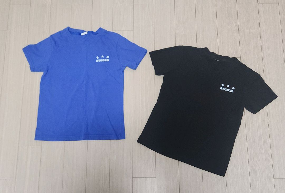 IAB STUDIO 반팔 티셔츠 2장입니다. - 색상은 파란색과 검정색입니다. - 사이즈는 150입니다. - 재질은 면 100%입니다. 약간의 사용감은 있지만, 편하게 입기 좋습니다. 한장당 1만원 두장 2만원입니다. 선입금 확인후 택배발송 해드리는점 양해부탁드립니다.