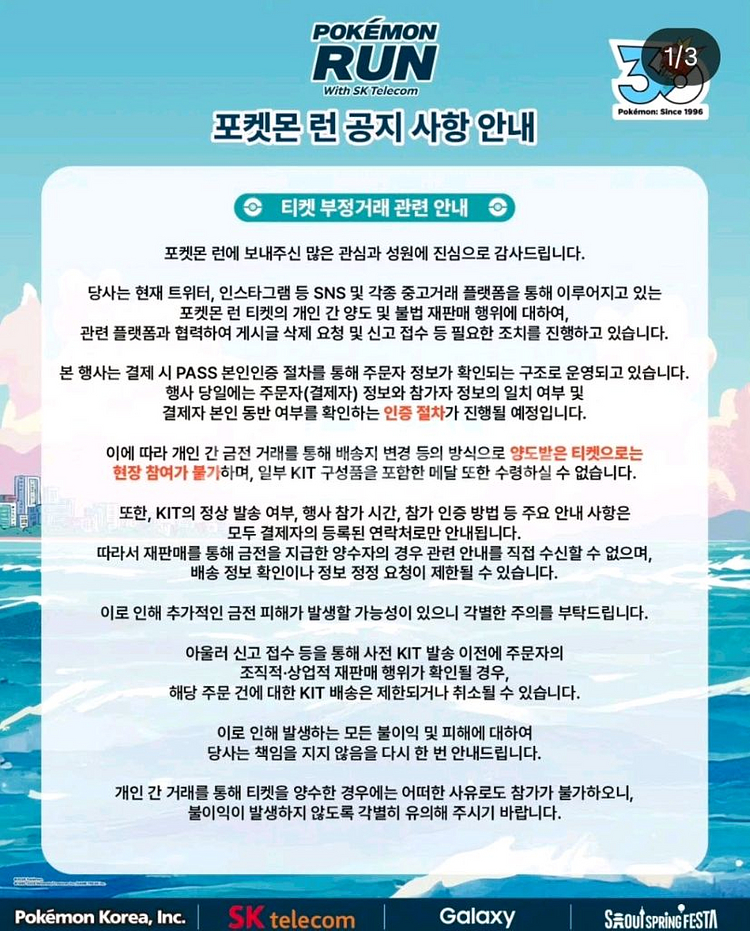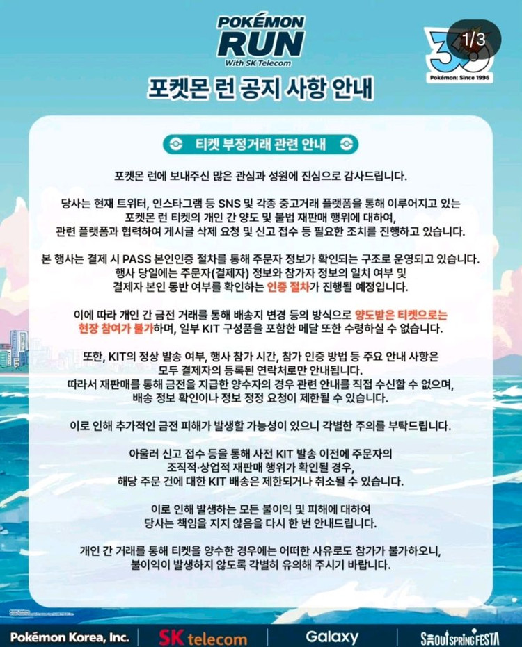 포켓몬런 양도금지 구매자정보인증 입장불가 공지