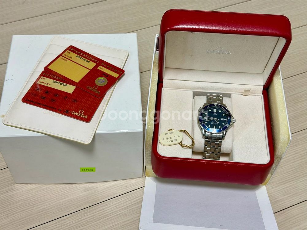 ✅와치빌런 시계 영상 리뷰 있습니다 (2541.80) 유튭 검색 - 유튭 시계는 아니고 같은 시계 입니다 ✅ 씨마스터 300 2541.80 (007 골든아이에서 나온 시계) 일명 피어스 브로넌스 시계 - 1998년에 생산된 모델 ✅ 노폴리싱 제품입니다 세월이 묻어난 시계이며 개인적으로 폴리싱 안하셨으면 합니다. ✅ 여분코 2개 있습니다 19cm까진 착용 가능 ✅풀박스이며 일주일전 사설업체(강남) 오버홀 완료 보증서카드에 적힌 시리얼번호는 사진에서 지웠습니다 (실제로는 적혀있어요) ✅ 해당 제품 풀박스인거 국내에 거의 없습니다 컬렉터 분들이라면 환영입니다. 🔥직거래로만 판매합니다🔥 읽씹은 즉시 차단해요~