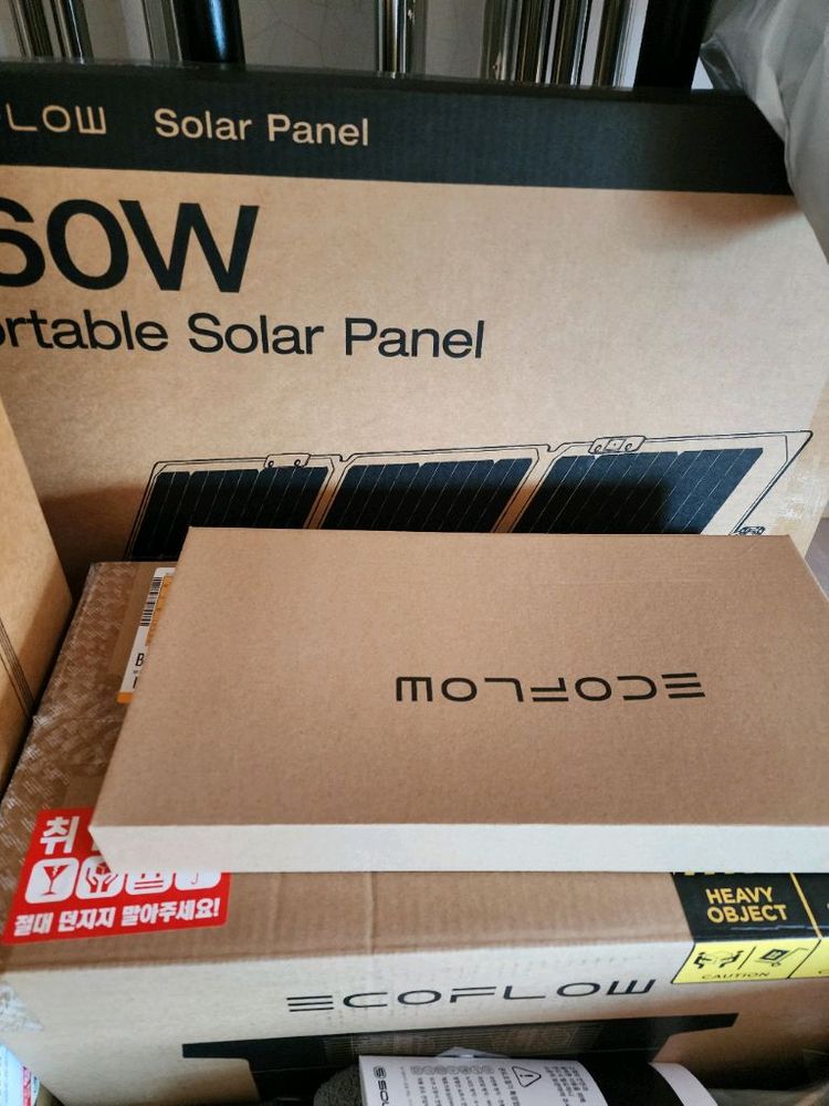 에코플로우 델타2 및 160W 휴대용 태양광 패널입니다. 박스에 담긴 새제품입니다.장기간 사용하지 않을시 충전을 70프로 정도 해야해서 본품은 개봉 했습니다..모든 구성품 다 있습니다..차박및 캠핑용 으로 샀는데 사정이 여의치 않아 내놓게 되었습니다.. 캠핑이나 야외활동 시 유용하게 사용 가능 합니다..네고도 합리적 선에서 의향 있습니다^