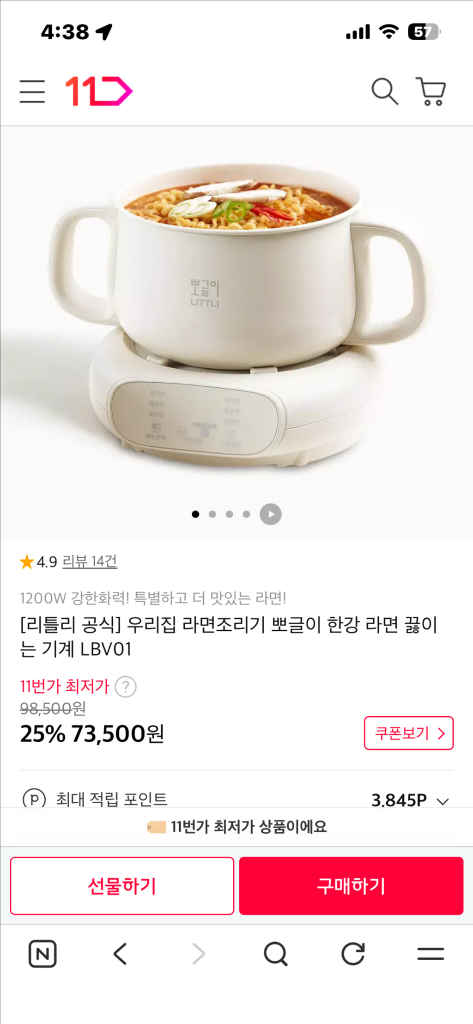 개인정보(거래정보)를 주고받는 행위는 사기에 노출될 수 있으므로 즉시 중고나라로 신고해 주세요새상품 리틀리 라면조리기예요! 박스 포장 그대로 미개봉 상태로 깨끗합니다. 집에서 간편하게 라면을 지을 수 있어서 정말 유용해요. 직거래 희망합니다. 택배는 착불입니다 공1공 칠2오칠 영5팔5