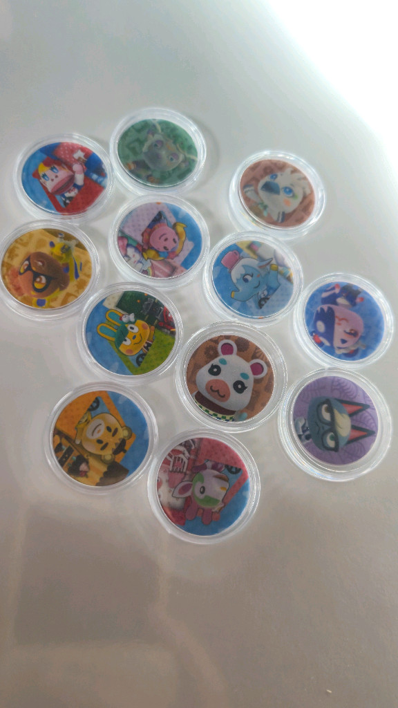 ✅️원하시는 모든 주민 4종 선택해서 말씀해주세요. 🎀4종 10,000원🎀 💙후기 써주신 분들은 400마일티켓 배송갑니다💙 일반주민, 산리오,젤다,스플래툰과 교차 4종선택 가능합니다. 가격은 똑같이 10,000원입니다. ✅️예시 : 쭈니, 뽀야미, 튤리, 에뜨와르 ✔️다른 판매자분들보다 저렴하게 하는 이유는 직접 프린트해서 스티커 용지로 카드에 붙여나가서 정품 카드와 다르게 생겼기 때문입니다. ✔️동전모양입니다. 500원짜리 동전만합니다. 케이스 그대로 인식 OK ✅️마일티켓,벨,레시피등 아이템 판매합니다. 문의주세요😍 청주분이시면 직거래 가능합니다☺️ 인식문제없구요 인식안되면 교환해드립니다. 주민은 너굴atm에 불러서 제작3번하면 주민으로 불러들일 수 있고 산리오나 젤다아미보 다 마찬가지입니다. 산리오나 젤다 스플래툰은 똑같이 너굴atm이나 파니에섬에서 불러들이면 아미보에 맞는 각종 가구,의상,포스터,장판,벽지 템을 구입할 수 있게됩니다.