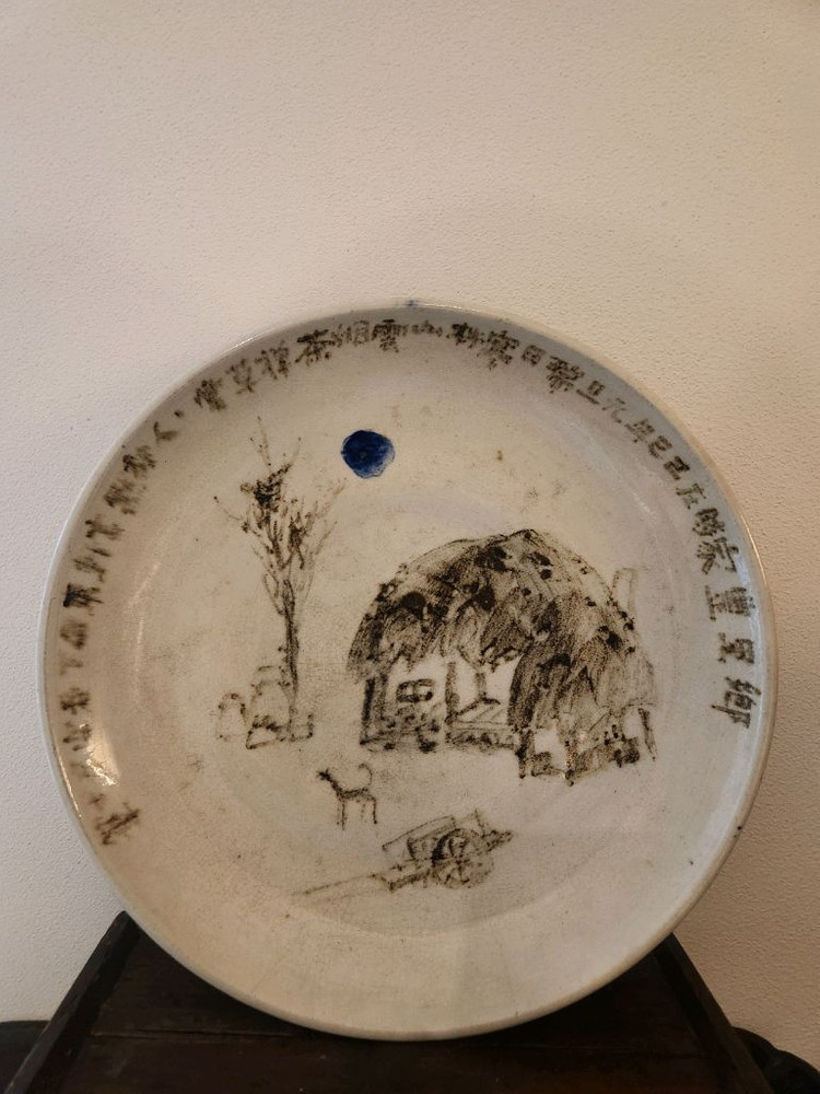 전통의 숨결 위에 그려진 한폭의 수묵화 토곡요의 정수를 소장할 기회 정겨운 초가와 나무 그리고 한가로이 노니는 강아지가 수묵화 기법으로 그려진 수작 푸른점(청화)으로 포인트를 주어 단조로운 여백에 생동감을 부여 지름 32 높이 5.5 작가 수결 유 전체 상태양호 단 세월의 흔적으로 구연부 미세크랙(유)가 한곳 있으나 오히려 빈티지하면서 멋스러워요 차실이나 서재 격식있는 공간의 오브제로 찰떡입니다 달빛아래 초가에 오랫만에 찾아온 벗이 차한잔 하자고 재촉하네요