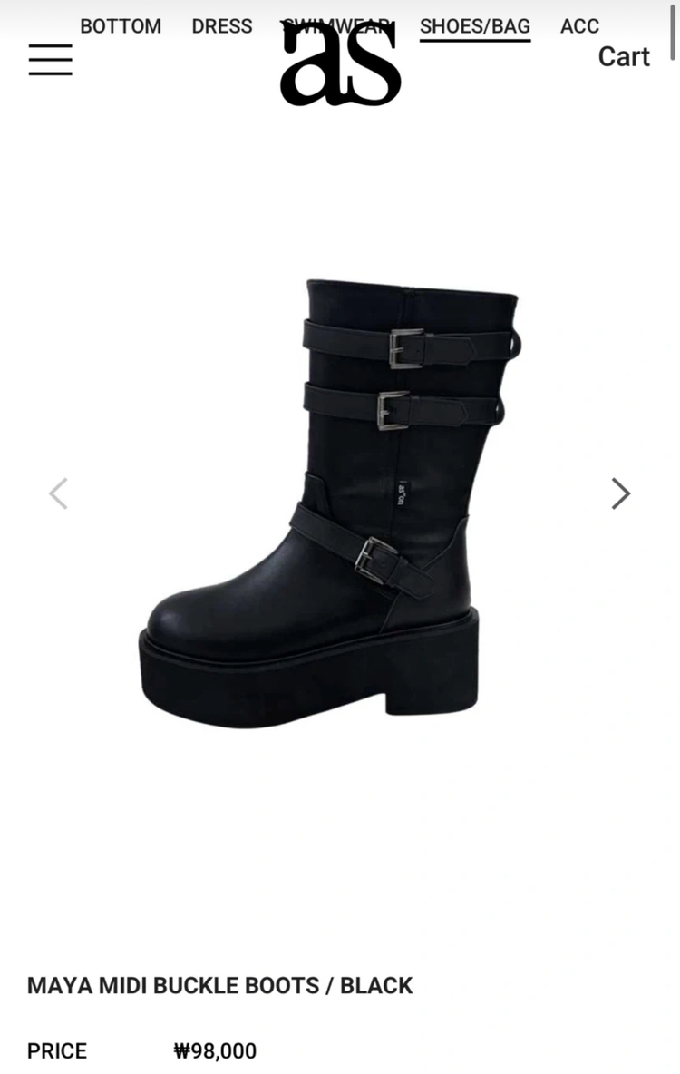 애즈온 마야 미디 버클 부츠 블랙입니다 굽은 6cm로 안정감 있으면서도 다리가 길어 보여요 락시크 무드의 버클 디자인이 포인트가 되어 다양한 코디에 활용하기 좋습니다 편안한 착용감으로 데일리로 신기에도 좋아요 정가는 98,000원입니다 사놓고 제 코디에는 잘 안신게 되어서 박스 뜯고 방에 두다가 밖에 신고 나간적 없는 제품입니다 연락주세요