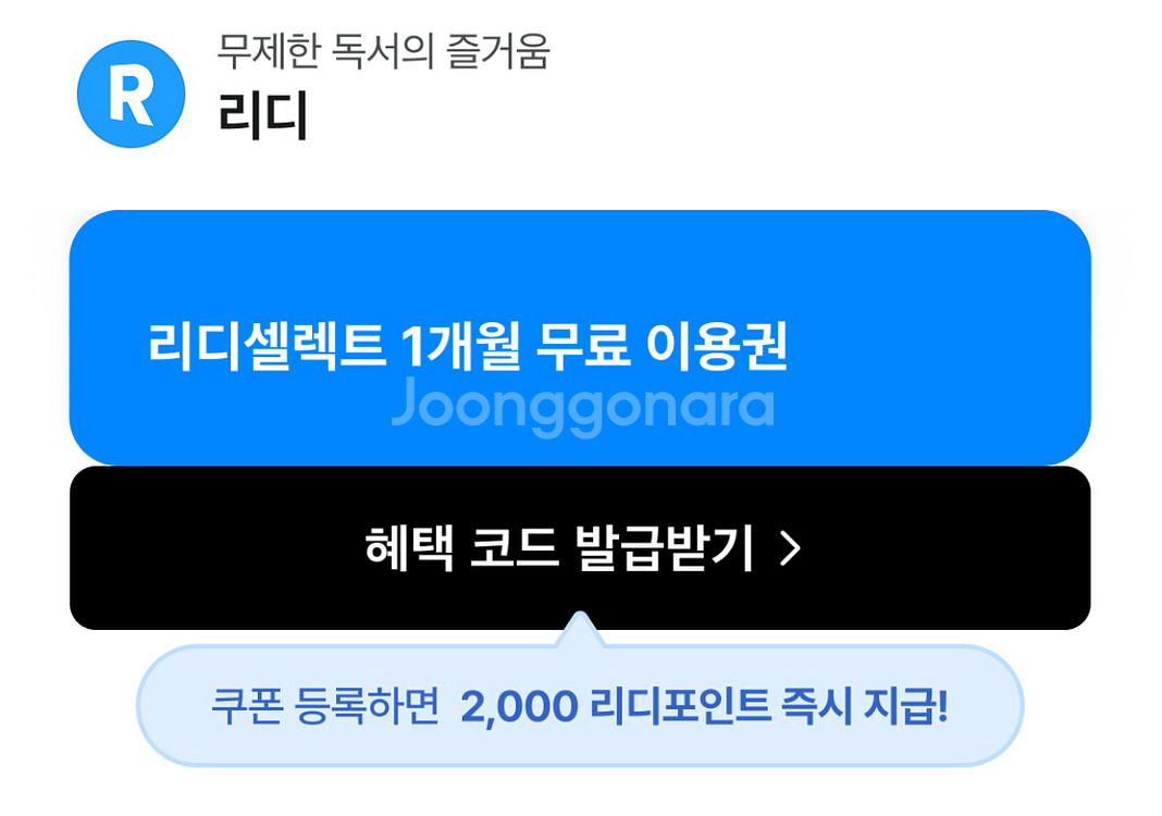 리디셀렉트 1개월 무료 이용권 +2000리디포인트