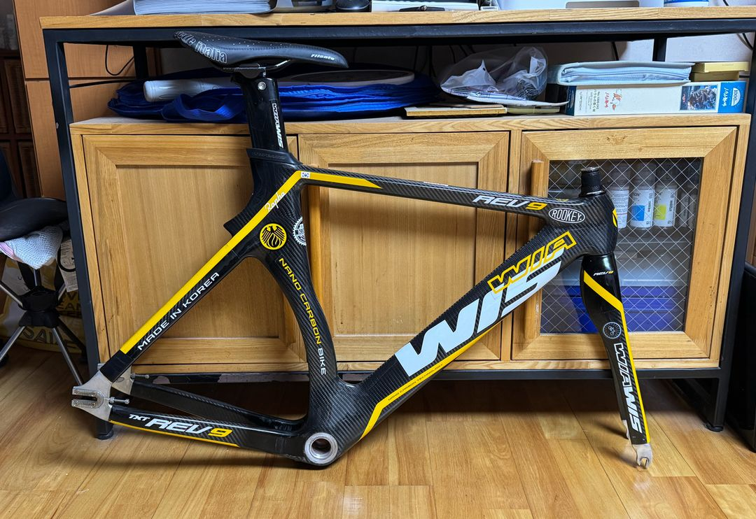 위아위스 레브나인 국군 체육부대 트랙차 판매합니다. TXT, TXT SD 보다 상급인 TXT PRO 라인입니다. 구매일자: 2021년 초 2016년 당시 프레임셋 새상품 630만원. 하자: 기스, 휠 밀림으로 인한 도장까짐(9번째 사진), 체인링 볼트 닿음으로 인한 도장까짐 (7.8번째 사진), 도장까짐으로 인한 절연테이프 감음(5번째 사진) 특이사항: 도장까짐은 21년도에 구매해 왔을때부터 있었습니다. 추가적인 도장 까짐 문제를 해결하기 위해 절연테이프를 감거나, PPF필름을 부착하여 기스 및 도장까짐을 방지하였습니다. 구성: 위아위스 레브나인 프레임 + 킹오브트랙 탑캡 + fsa헤드셋 + 105급 브레이크 + 브레이크 패드 + 브레이크 레버 + 셀레 이탈리아 가죽 리폼 안장 모든 나사선 새상품 정도의 컨디션 가지고 있습니다. 문제 없이 잘 타온 제품입니다. 볼트 하나 푸는 정비도 픽시 전문샵에서 공임비 지불하고 점검 받아왔습니다. 판매가 180만원🔥 교신은 휠셋으로만 받습니다. ❤️