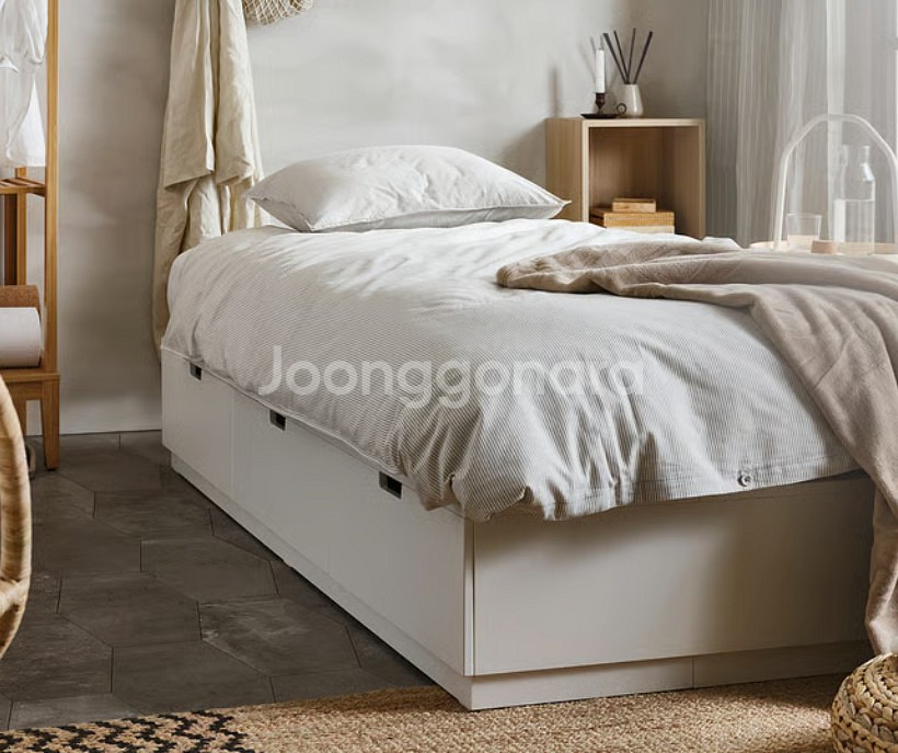 이케아 노르들리 슈퍼싱글 수납 침대 프레임 화이트 120x200 새상태 팝니다. IKEA NORDLI 503.498.56 길이: 202 cm, 폭: 120 cm, 높이: 30 cm 서랍높이(내부): 16 cm. 서랍폭(내부): 58 cm, 서랍깊이(내부): 51 cm 수납력 좋고 깔끔한 디자인의 침대 프레임입니다. 분리 가능하고 큰 차량 운반 가능합니다. 상태 좋으며 가격은 21 입니다. 구매 원하시는 분은 연락주세요 :) 서울 강동 암사 직거래 가능합니다. 010-2888-5334