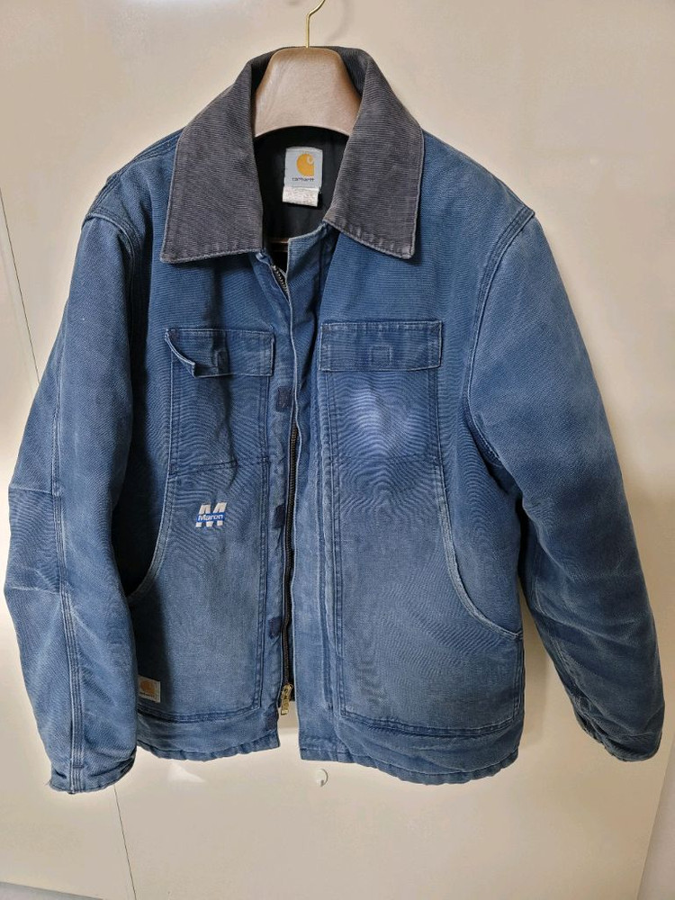 칼하트 데님 빈티지워싱 디트로이드 웍스 자켓 46표기 105정사이즈 상태굿 46표기 크게나와 남성 105정입니다 빈티지하게 입는 룩으로 나온제품