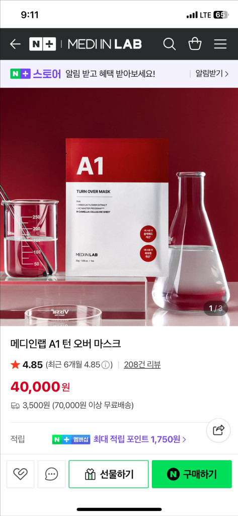 메디인랩 A1 턴오버 마스크 1박스 당 25000원 새상품 2박스 / 중고 (총 10매 중 9매 남은 상품) 한 번에 구매하시면 네고 해드릴게요. 중고거래 특성상 교환, 환불 어렵습니다.